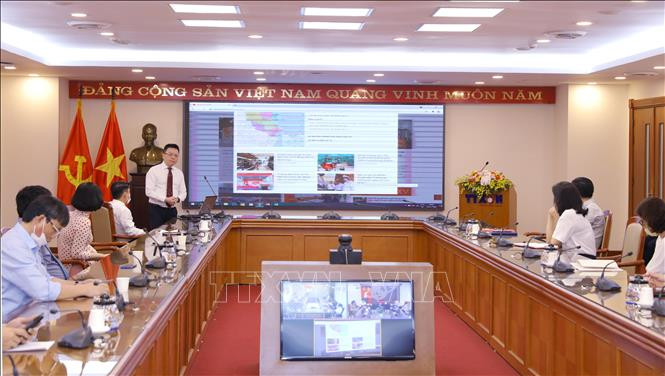 Đồng chí Lê Quốc Minh, Ủy viên Trung ương Đảng, Bí thư Đảng ủy, Phó Tổng giám đốc TTXVN giới thiệu về vai trò và tầm quan trọng của trang thông tin phục vụ công tác bầu cử. Ảnh: Văn Điệp – TTXVN