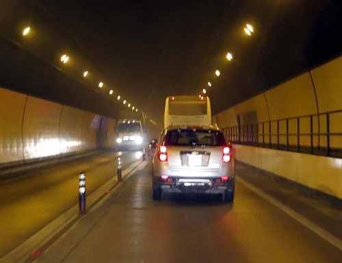 | Xe lưu thông qua hầm đường bộ Phước Tượng - Phú Gia . Ảnh: Quốc Vietj- TTXVN |