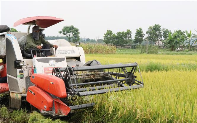 Thu hoạch lúa giống mới, chất lượng cao tại xã Cù Vân, huyện Đại Từ, tỉnh Thái Nguyên. Ảnh: Hoàng Nguyên - TTXVN