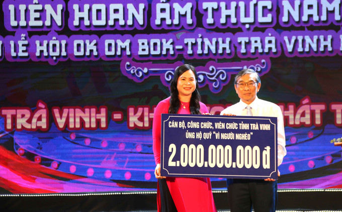 Tại lễ khai mạc, Chủ tịch Ủy ban Mặt trận Tổ quốc Việt Nam tỉnh Trà Vinh Nguyễn Văn Triết đã tiếp nhận bảng tượng trưng 2 tỷ đồng của cán bộ, công chức, viên chức trong tỉnh ủng hộ 1 ngày lương vào Quỹ “Vì người nghèo” của tỉnh.