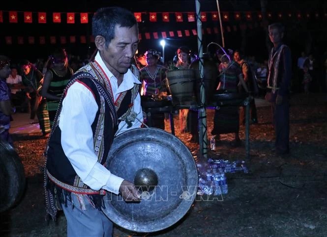 Màn biểu diễn cồng chiêng trong lễ hội mừng lúa mới. Ảnh: K GỬIH –TTXVN