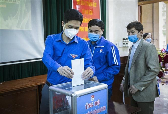 Đoàn viên, thanh niên tham gia quyên góp ủng hộ cho cơ sở, cán bộ, chiến sĩ đang công tác, làm nhiệm vụ tại các hòn đảo, quần đảo Trường Sa và nhà dàn DK1. Ảnh: Trọng Đạt-TTXVN