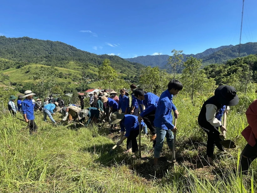 Tỉnh Đoàn Kon Tum phối hợp với Đoàn Thanh niên Trường Đại học Sư phạm Thể dục thể thao Thành phố Hồ Chí Minh tổ chức phát quang đường đi khu sản xuất cho người dân tại xã Ia Dom (huyện Ia H’Drai, tỉnh Kon Tum). Ảnh: Khoa Chương - TTXVN