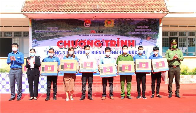 Tỉnh đoàn Kon Tum tặng "Túi an sinh" hỗ trợ cho người dân có hoàn cảnh khó khăn tại khu vực biên giới huyện Ngọc Hồi, tỉnh Kon Tum. Ảnh: Khoa Chương - TTXVN