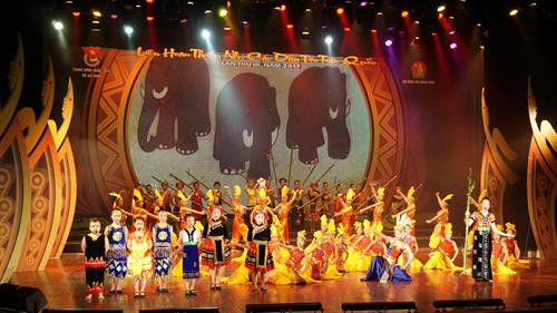 | Ông Nông Quốc Tuấn, Thứ trưởng, Phó Chủ nhiệm Ủy ban Dân tộc trao quà tặng cho Liên hoan. Ảnh: Hoàng Tâm |