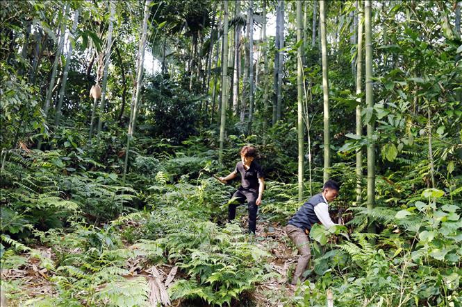 Người dân xã Hồng Quang, huyện Lâm Bình, trồng rừng phát triển kinh tế. Ảnh: Quang Cường –TTXVN.