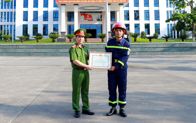 Ngày 4/7, thừa ủy quyền của Chủ tịch UBND tỉnh, Đại tá Đỗ Tiến Thùy, Phó Giám đốc Công an tỉnh Tuyên Quang đã trao Bằng khen của Chủ tịch UBND tỉnh cho chiến sỹ Quan Ngọc Hoàng là công dân phục vụ có thời hạn trong lực lượng Công an nhân dân, đang công tác tại phòng Cảnh sát phòng cháy, chữa cháy và cứu nạn cứu hộ Công an tỉnh Tuyên Quang về thành tích xuất sắc trong công tác cứu nạn, cứu hộ và khắc phục hậu quả thiên tai, mưa lũ tại Trường Trung học Phổ thông Lâm Bình.