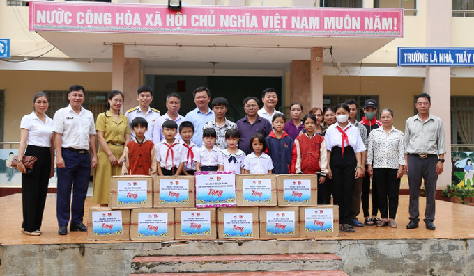 Tổng công ty Tân Cảng Sài Gòn tặng quà cho học sinh nghèo tại Kon Tum. Ảnh: TTXVN phát