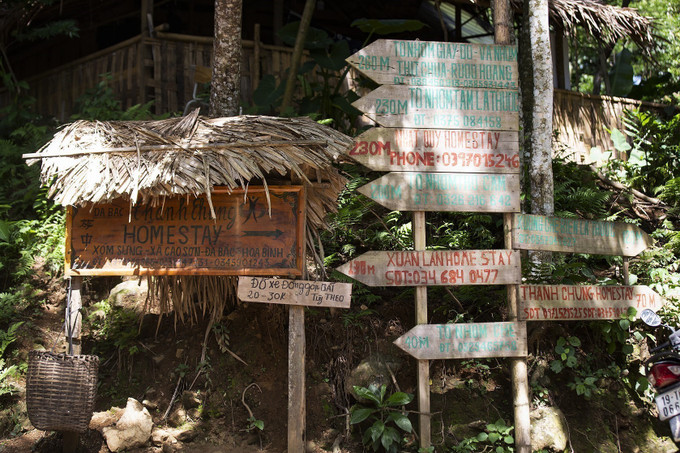 Biển chỉ dẫn đến các homestay tại bản Sưng (Đà Bắc, Hòa Bình). Ảnh: Trọng Đạt – TTXVN