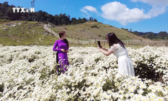 Những vườn hoa cúc họa mi hòa quện với nền trời cao xanh ở cao nguyên Mộc Châu cuối Thu, đầu Đông là một sự kết hợp hoàn hảo cho những ai đam mê chụp ảnh. Bởi vậy, không chỉ du khách đến từ mọi miền đất nước mà nhiều người dân ở Mộc Châu cũng say đắm với khung cảnh thơ mộng này.