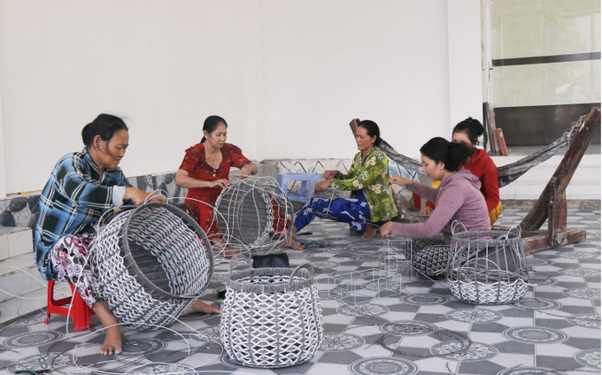 Hội viên đồng bào Khmer của Hội phụ nữ ở xã Ninh Thạnh Lợi (huyện Hồng Dân, tỉnh Bạc Liêu) có nguồn thu nhập cơ bản từ nghề đan đát. Ảnh: Chanh Đa-TTXVN