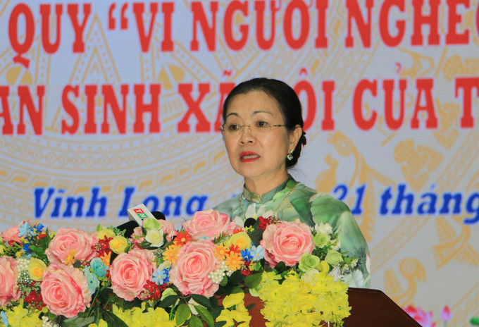 Phát biểu tại hội nghị, Phó Chủ tịch Ủy ban Trung ương MTTQ Việt Nam Trương Thị Ngọc Ánh biểu dương tỉnh Vĩnh Long trong công tác xóa nhà tạm cho hộ nghèo, cận nghèo, hộ có hoàn cảnh khó khăn về nhà ở với nhiều mô hình hay, cách làm sáng tạo, từ đó thực hiện tốt công tác an sinh xã hội, góp phần ổn định cuộc sống cho người nghèo.