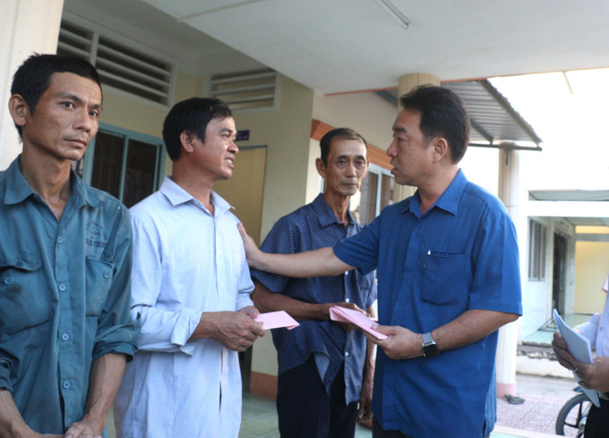 Chủ tịch Ủy ban nhân dân tỉnh Vĩnh Long Lữ Quang Ngời thăm và hỗ trợ các gia đình bị mất nhà do sạt lở. Ảnh: Lê Thúy Hằng – TTXVN