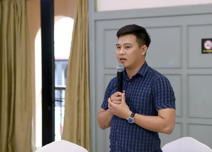 Giám đốc Công ty du lịch Khám phá Phú Quốc Travel Đặng Văn Tùng đóng góp ý kiến hoạt động du lịch Vĩnh Phúc tại buổi tọa đàm. Ảnh: Hoàng Hùng – TTXVN