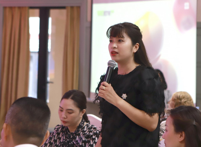 Giám đốc Công ty du lịch Sun Smille Việt Nam Dương Thanh Hằng đóng góp ý kiến về hoạt động du lịch Vĩnh Phúc tại buổi tọa đàm. Ảnh: Hoàng Hùng – TTXVN