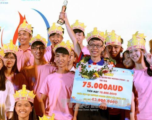 Thí sinh Đặng Vũ Bảo (trường THPT Bảo Lộc, tỉnh Lâm Đồng) – với ước mơ nghề nghiệp là “Kỹ sư sinh học”, đạt giải Nhất cuộc thi với phần thưởng là một suất học bổng toàn phần chương trình cử nhân tại Đại học Western Sydney (Australia) trị giá 75.000 AUD. Ảnh: An Hiếu - TTXVN