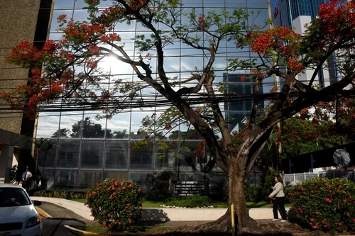 : Quang cảnh bên ngoài Trụ sở công ty Mossack Fonseca đặt tại Panama City ngày 9/5. AFP/TTXVN