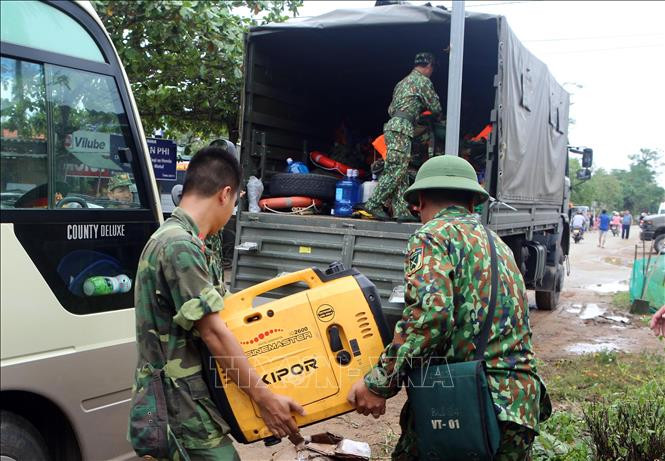 Vận chuyển các trang thiết bị để tiếp ứng cho lực lượng cứu hộ cứu nạn. Ảnh: Trần Lê Lâm – TTXVN