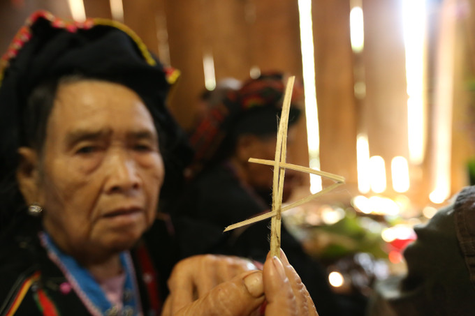 “Peng chẹp kha” là đồ vật hình chữ A được đan từ lạt, để đại diện cho chủ hộ trong dòng họ về dự lễ. Ảnh: Phan Tuấn Anh