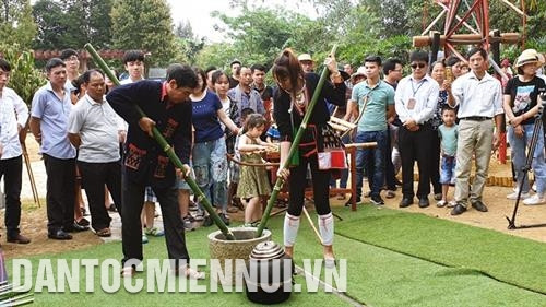 | Đồng bào dân tộc Dao giã bánh giầy để dâng cúng nhân ngày Giỗ Tổ. Ảnh: Nam Sương |