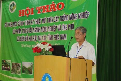 Ông Lê Minh Khánh, Phó Giám đốc Sở Nông nghiệp và Phát triển nông thôn tỉnh Tiền Giang cho biết, địa phương có trên 74.000 ha đất trồng cây ăn quả, khoảng 77.000 ha đất trồng lúa và là tỉnh trọng điểm về sản xuất nông nghiệp tại Đồng bằng sông Cửu Long nên nhu cầu giống mới có nhiều ưu điểm về năng suất, sản lượng và chất lượng cũng như các giải pháp thâm canh phù hợp, giảm nhẹ thiệt hại do thiên tai. Hội thảo được tổ chức là dịp để giới thiệu những kết quả xuất sắc trong lĩnh vực chọn tạo giống, giới thiệu biện pháp canh tác khoa học cần thiết và đáp ứng được nhu cầu thâm canh thích ứng biến đổi khí hậu, giúp nông dân làm giàu bền vững.