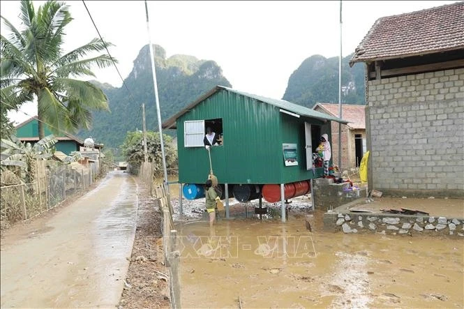 Nhà chống lũ đã thể hiện rõ ràng tác dụng của mình tại vùng rốn lũ miền Trung Ảnh: TTXVN