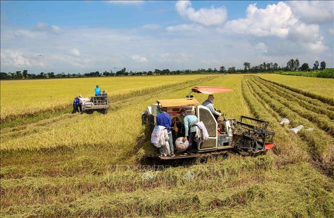 Nông dân thu hoạch lúa . Ảnh: Thanh Liêm - TTXVN