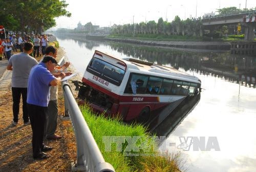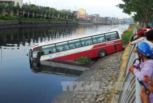 Thông tin ban đầu, vào khoảng 5 giờ cùng ngày, xe khách biển kiểm soát 51B - 038.40 đang lưu thông trên đường Võ Văn Kiệt, hướng từ huyện Bình Chánh về quận 1. Khi mới qua cầu Lò Gốm, chiếc xe bất ngờ mất lái, đâm hàng loạt dải phân cách cứng rồi lao xuống kênh Tàu Hủ - Bến Nghé. Tài xế và phụ xe đã phá cửa, kịp thời thoát ra ngoài.