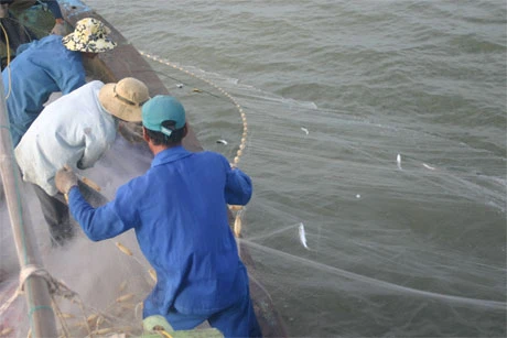 Bạn ghe thả lưới bắt cá đối. Ảnh: http: baoapbac.vn