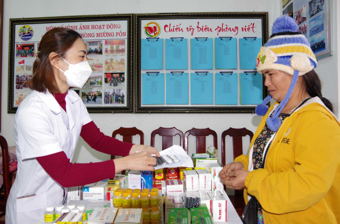Lực lượng quân y Bộ đội Biên phòng tỉnh Điện Biên cấp phát thuốc miễn phí cho người dân xã biên giới trong Chương trình “Xuân biên phòng ấm lòng dân bản” Tết Quý Mão 2023. Ảnh: TTXVN phát