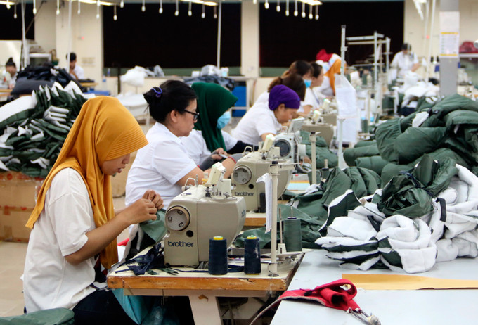 Công ty may Đồng Xuân Lộc ở xã Xuân Hưng, huyện Xuân Lộc (Đồng Nai) có hơn 45% lao động là người dân tộc thiểu số tại địa phương tham gia lao động sản xuất. Ảnh: Lê Xuân