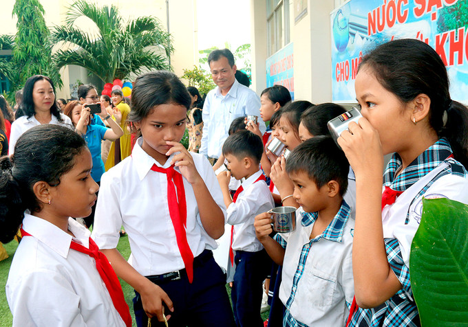 Đưa nước sạch học đường đến với con em đồng bào dân tộc thiểu số ở huyện Bắc Bình (Bình Thuận). Ảnh: Nguyễn Thanh