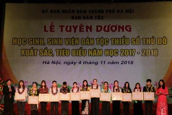 Vừa qua, tại Hà Nội, Ban Dân tộc Thành phố Hà Nội phối hợp với một số đơn vị liên quan tổ chức Lễ tuyên dương 125 học sinh, sinh viên dân tộc thiểu số (DTTS) Thủ đô có thành tích xuất sắc và đạt giải cao trong các kỳ thi học sinh giỏi năm học 2017 - 2018.