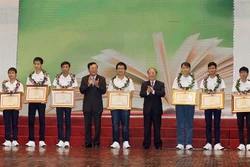 Tối 30/11, Chủ tịch Quốc hội Nguyễn Sinh Hùng đã tới chúc mừng và trao phần thưởng cho các học sinh xuất sắc trong Lễ Tuyên dương học sinh đoạt giải Olympic quốc tế và học sinh xuất sắc nhất kỳ thi THPT Quốc gia năm 2015 do Bộ Giáo dục và Đào tạo tổ chức.
