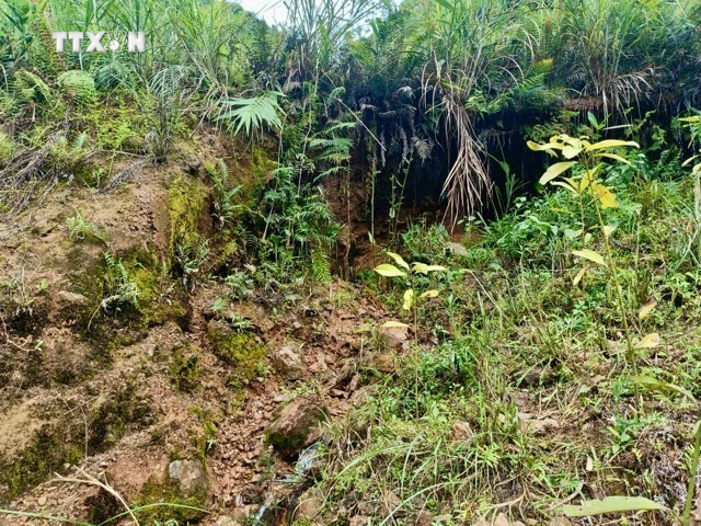 Theo ông Chương, năm 2021 vị trí này đã bị sạt trượt, đất đá vùi lấp nhiều diện tích bề mặt tầng 1 của nhà trường, dù đã được gia cố taluy, khắc phục các điểm xung yếu, nhưng do địa chất yếu, nhiều mạch nước ngầm hoạt động khiến taluy luôn trong tình trạng có nguy cơ bị sạt lở.