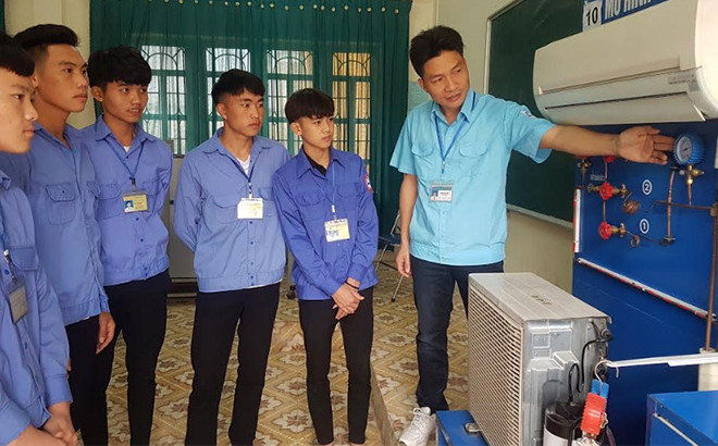 Lớp học nghề điện lạnh tại Trường Trung cấp Nghề Dân tộc nội trú Nghĩa Lộ. Ảnh: baoyenbai.com.vn